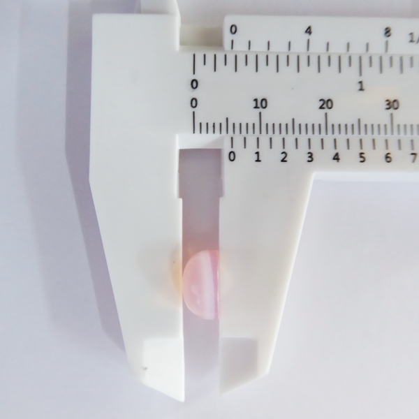 10 mm is a small sized stone (shown on the callipers – read the lower zero marker for true size) ideal for pendents, brooches, earrings and bracelets.