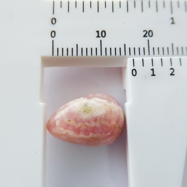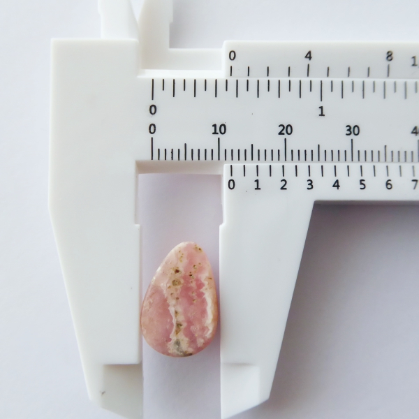 17 mm is a medium sized stone (shown on the callipers – read the lower zero marker for true size) ideal for pendents, brooches and bracelets.